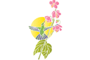 Колибри, порхающая у цветка на фоне закатного солнца. Однослойный художественный трафарет для декора...
