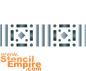 Геометрический рисунок с повторами из вертикальных полос, маленьких точек и ромбов. Однослойный трафарет для декора.