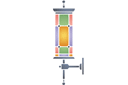 Небольшой уличный фонарь с цветными стеклами, висящей на кованной штанге с узорами. Однослойный...