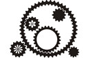 Шестеренчатая передача из множества шестеренок различного размера. Декоративная интерьерная наклейка.
