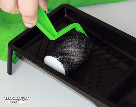 К малярному валику прилагается ванночка для раскатки краски. Наливаем в нее немного краски.